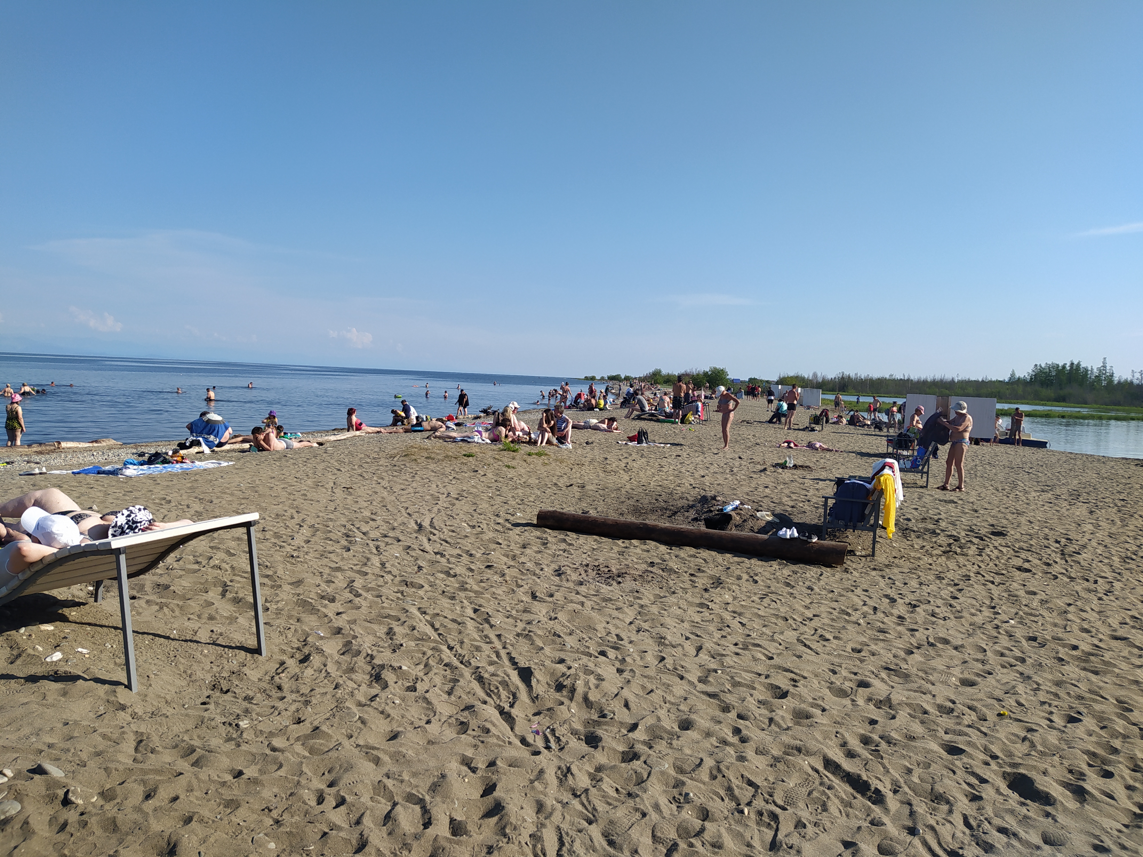 День жаркий сегодня, на пляже многолюдно. Вода вообще как в море - ощущение, что все 25 градусов. Как она так прогрелась внезапно - хз... Вчера жары не было.
