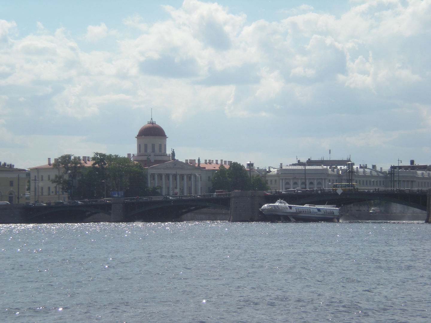 Так выглядит Стрелка Васильевского острова с палубы корабля