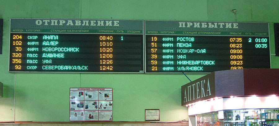 В главном здании вокзала в ожидании "премиума" в Мск. На табло в ряду присутствующих "Ямал", "Енисей" и "Сапсан".