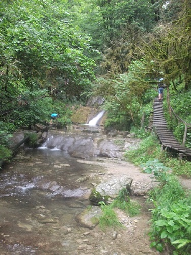 П.Д.С.:и Дагомысские корытА (именно так делают ударение местные жители), где вода через выступающие рваными краями на поверхность каменные стены переливается из одного корыта в другое (кстати, можно искупаться в них), образуя пороги и даже небольшие водопады. Туда-обратно на такси.