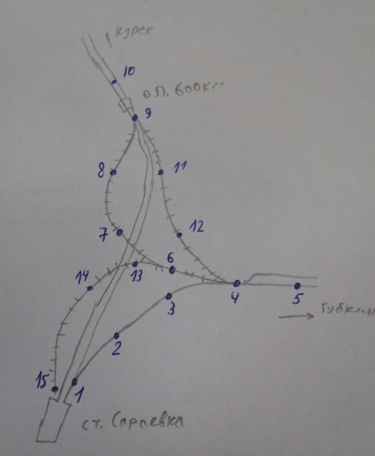 Электропоезд со ст Сараевка отправляется на Курск. Можно было бы кстати, выйти на о.п. 600 км и начать осмотр оттуда