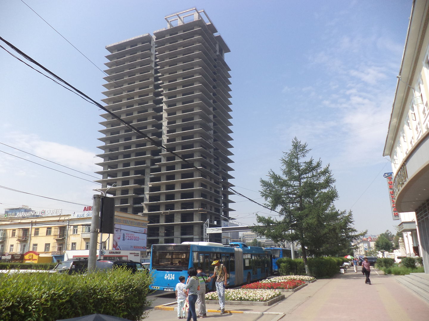 Квартира наша находилась недалеко от центра. Сложив вещи, мы отправились менять валюту в главный торговый центр - Их Дээлгур по-монгольски, что почти тоже самое и означает. Кстати, лучше ехать в Монголию с долларами, рубли поменять труднее. В этом самом Дээлгуре мы задержались надолго, но об этом будет сказано в отдельном разделе о торговле. Фото с верхнего этажа, жёлтый купол - городской цирк: