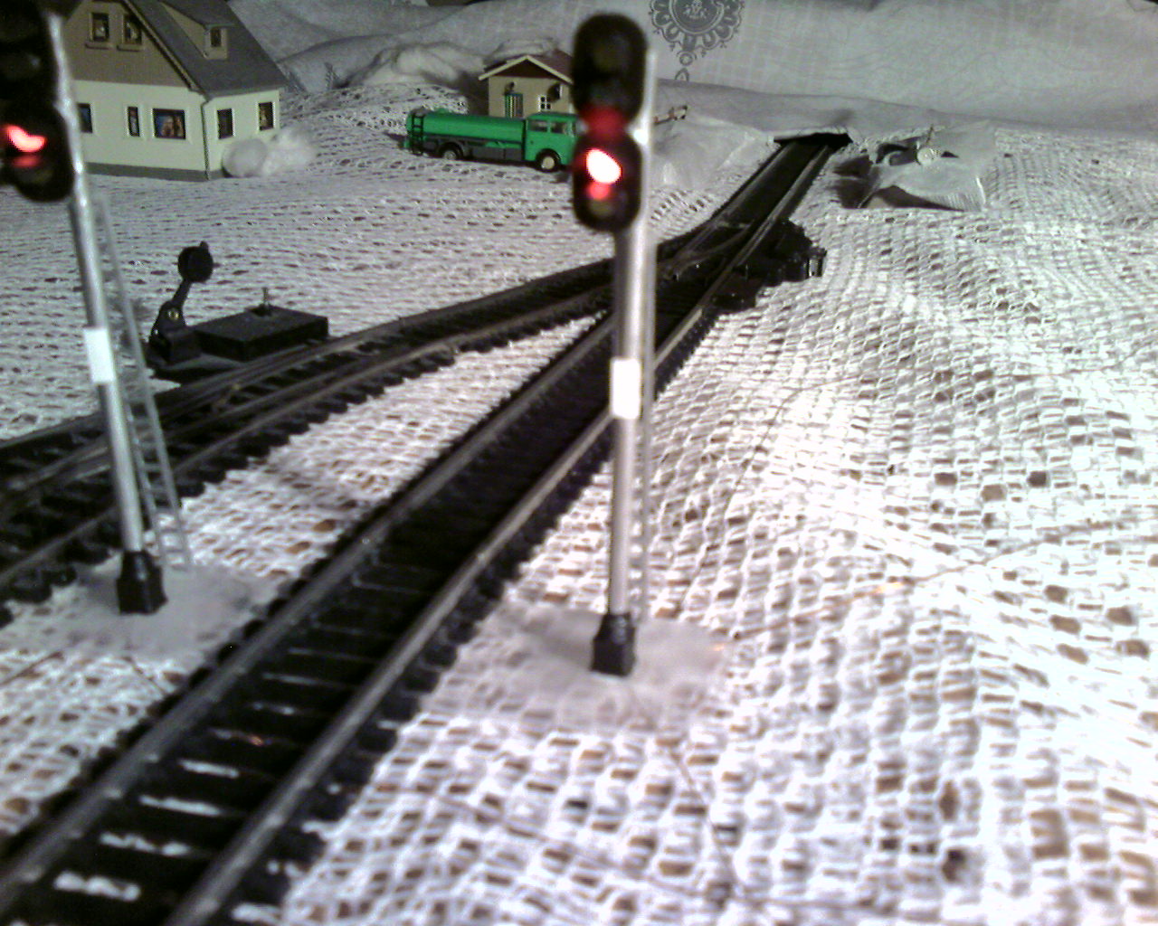 Осматриваемся по сторонам. Недалеко есть автодорога с железнодорожным переездом. На станции тихо, и судя по огням светофоров, ничего не ожидается. Но вскоре мы услышали звуки сигнализации закрывающегося переезда.