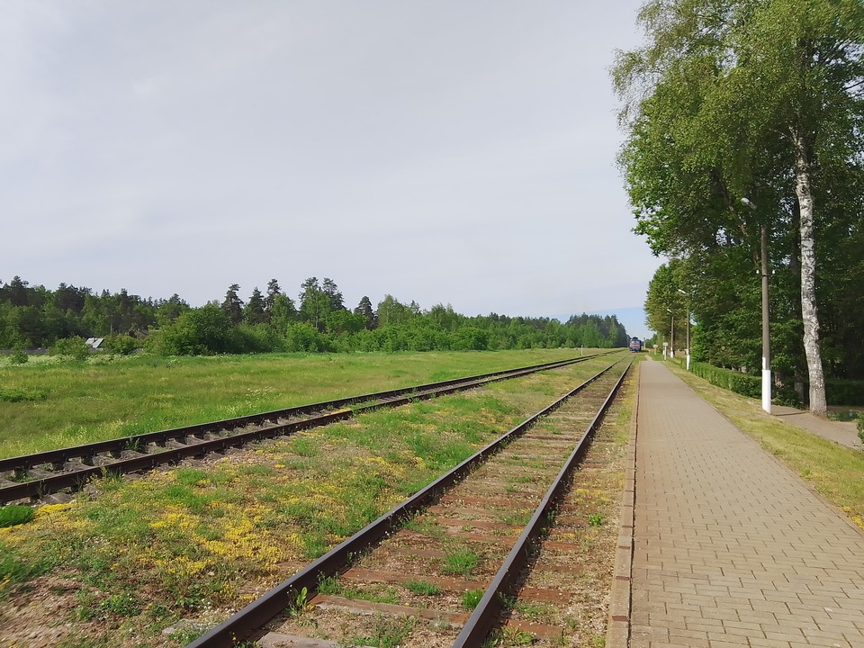 Алеша на юг, вдалеке спрятался белорусский дизель. Второй путь закрыт скорее всего