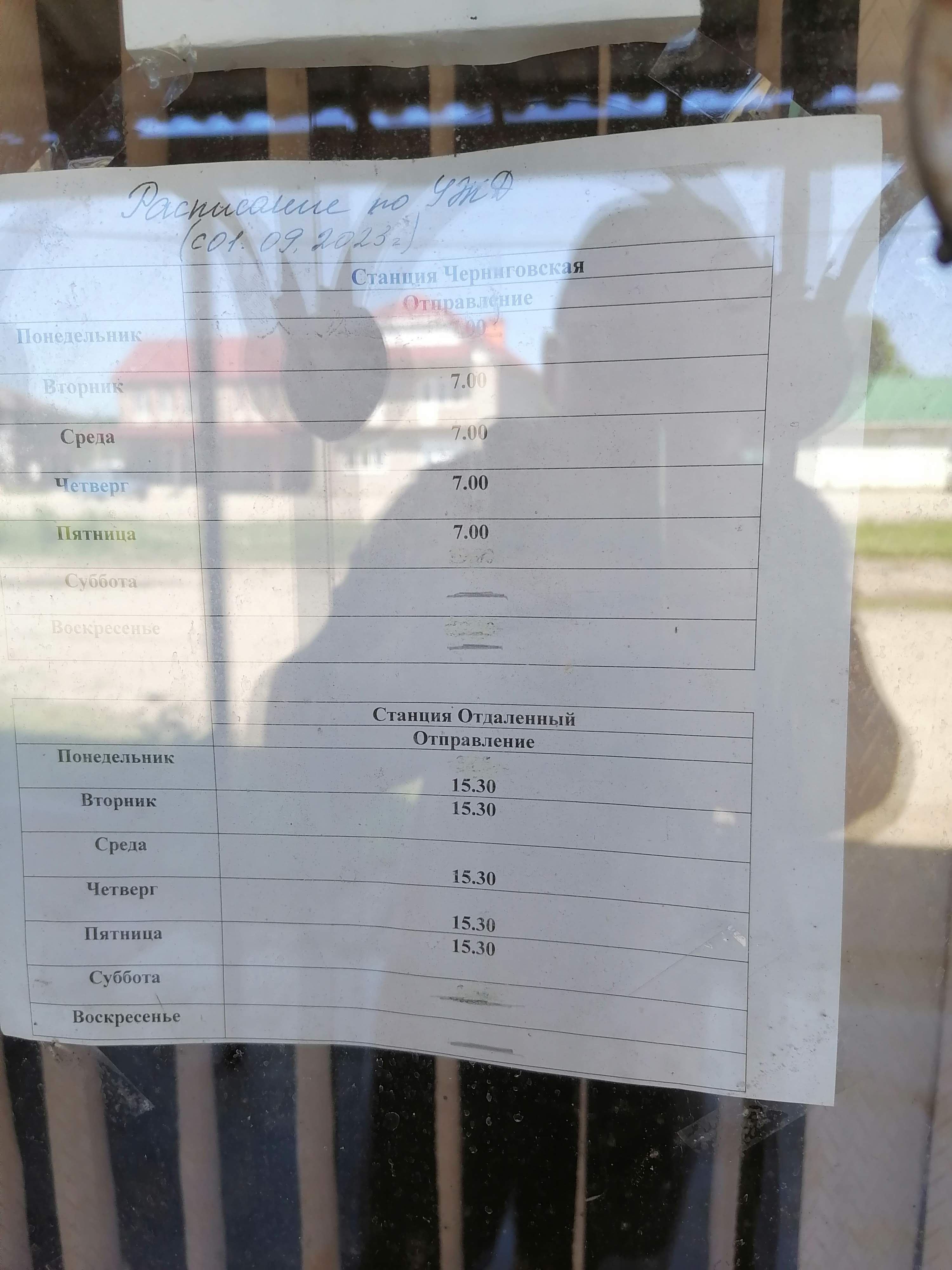 Время отправления Черниговское: 6:00; 15:10 Понедельник, Среда, Пятница