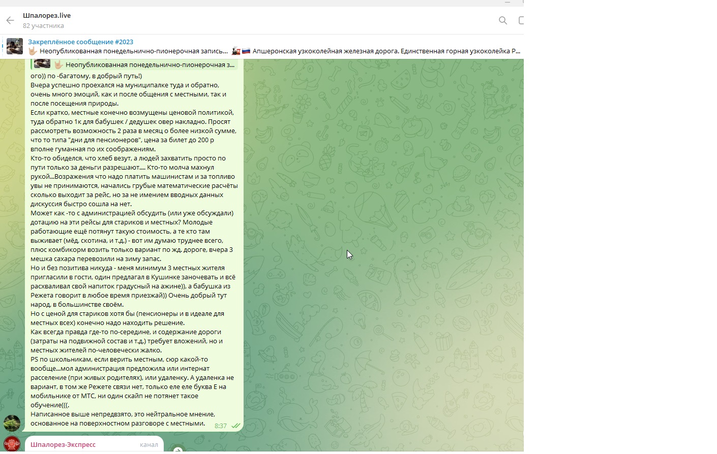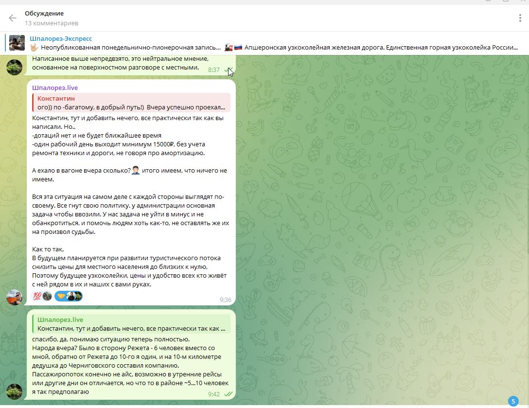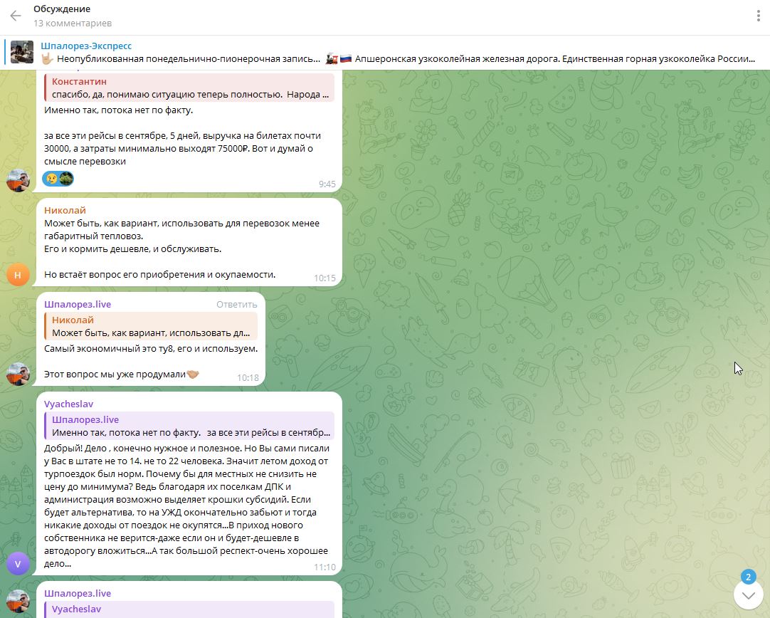Добрый день друзья! Не нашел на форуме соотв. ветку по теме, если она есть, прошу подсказать. А если таковой нет, то буду здесь размещать информацию о текущем состоянии пассажирского (муниципального), а также туристического пассажирского движения проект Шпалорез - Экспресс) https://shpalorez.com/