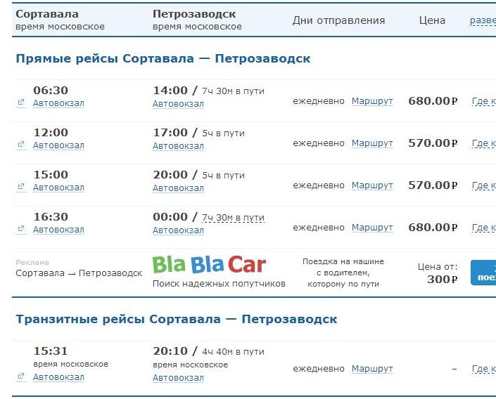 1) автобус от А.С. «Мурино» до Сортавалы 4 часов 46 мин.;