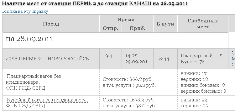 Наличие мест от Перми до Канаша на 28.09.2011. Места есть.
