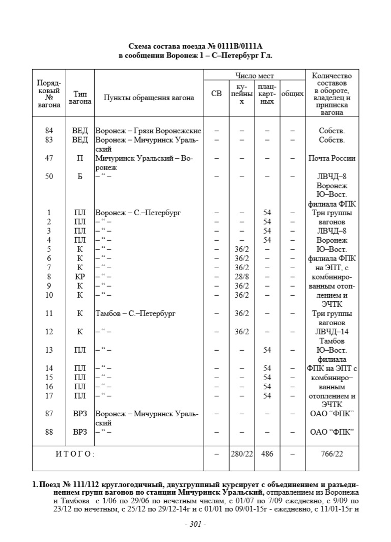 Действующий график 111-го СПб-Врн от Мичуринска до Воронежа