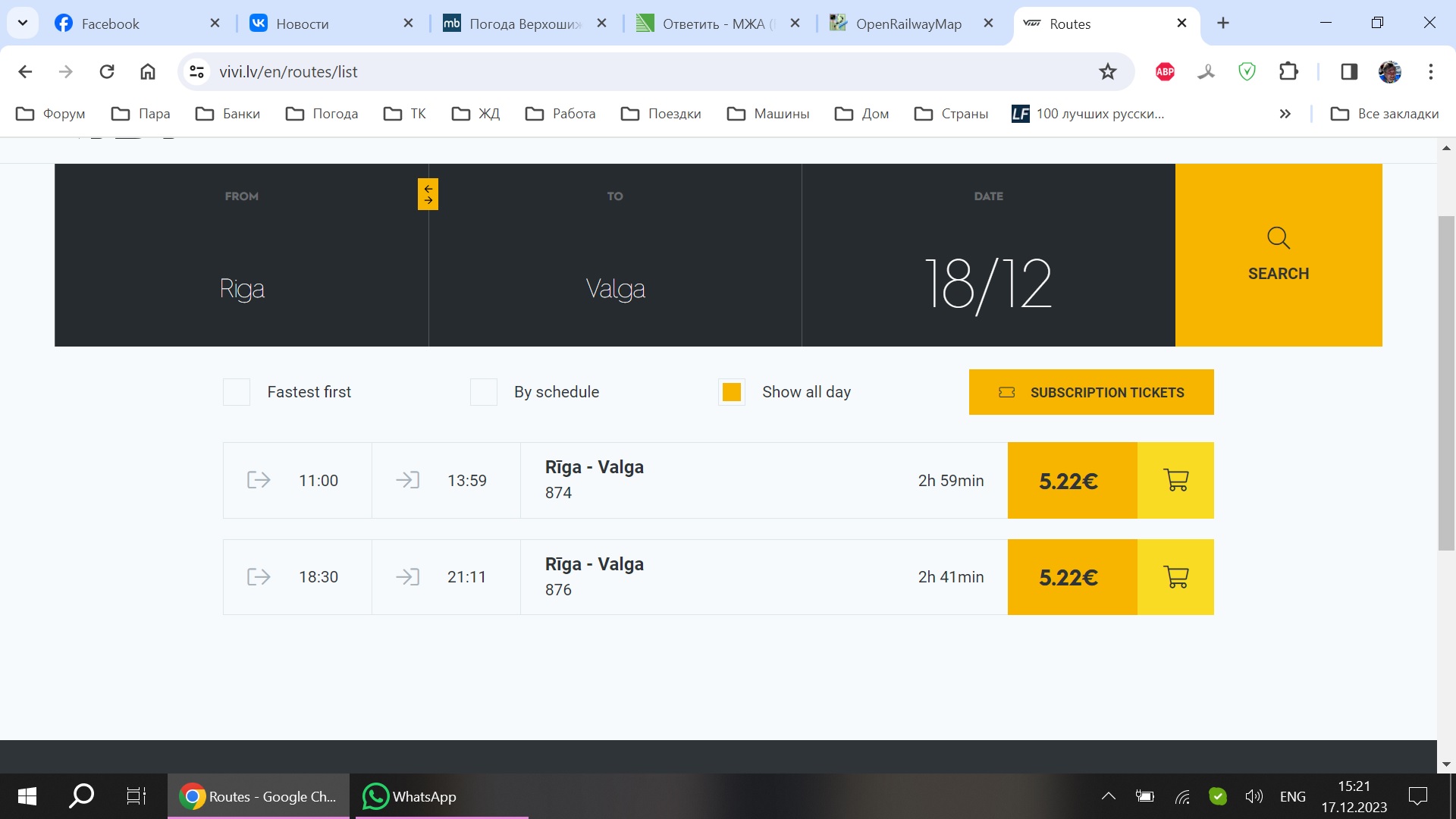 Так и есть. https://www.rome2rio.com/ru/Поезд/Валга/Рига https://www.rome2rio.com/ru/Поезд/Рига/Валга Только одна сегодня, в воскресенье из Валги в Ригу и всё!