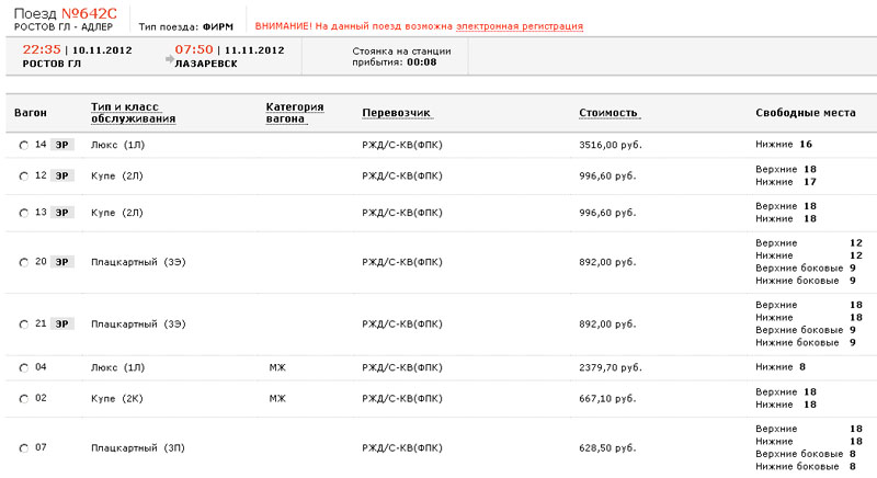 Специалисты-знатоки, подскажите, пожалуйста. Дата поездки - 10 ноября 2012 г. из Ростова до Лазаревской. Стала смотреть билеты в конце октября и не обнаружила поезда вообще. Его отменили? Или просто глюк?