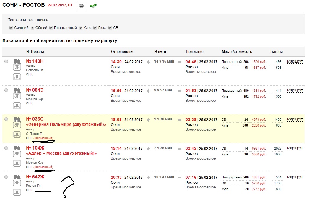 Заодно глянула, что за таинственные 4763 рубля - это на нижнюю полку в купе цена, оказалось. Зато в плацкарте хоть верх, хоть низ - чуть за 3600. Возьму-ка, наверно, я плацкартный в целях экономии.