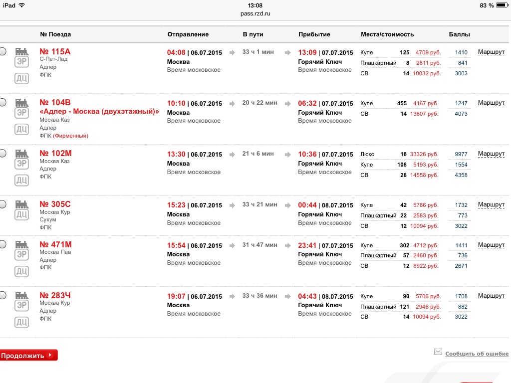 Из Москвы до Лазаревской, на 305 поезде, в июле
