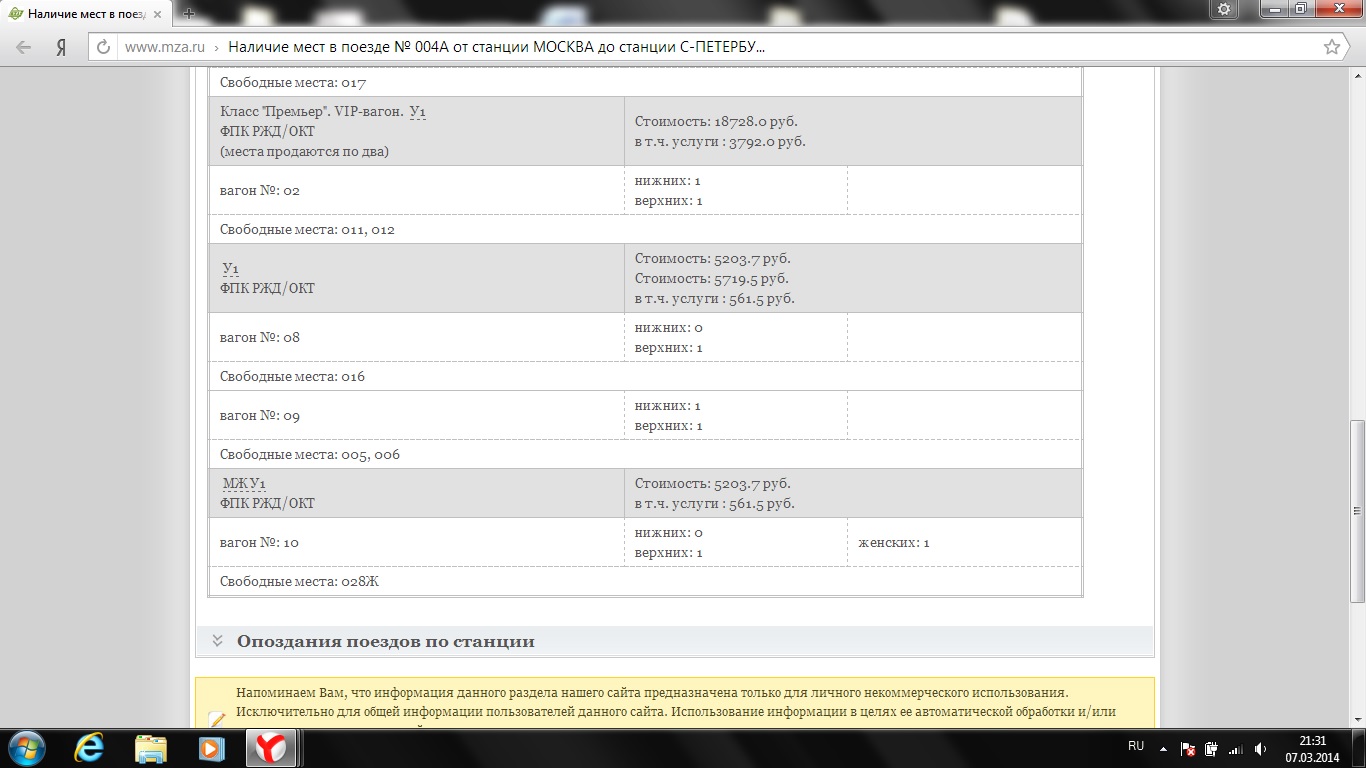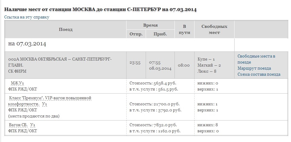 Я наблюдал пару дней назад. Не ушли.serg:Опрометчивый вывод. При тотальном дефиците мест, на этот поезд места могут быть выкуплены "теми, кому положено", либо "пойманы кассирами" в момент снятия брони. А при наличии некоторого спроса, эти места уходят в первую очередь, а те которые были свободными до снятия брони остаются нераскупленными - проверено на практике...
