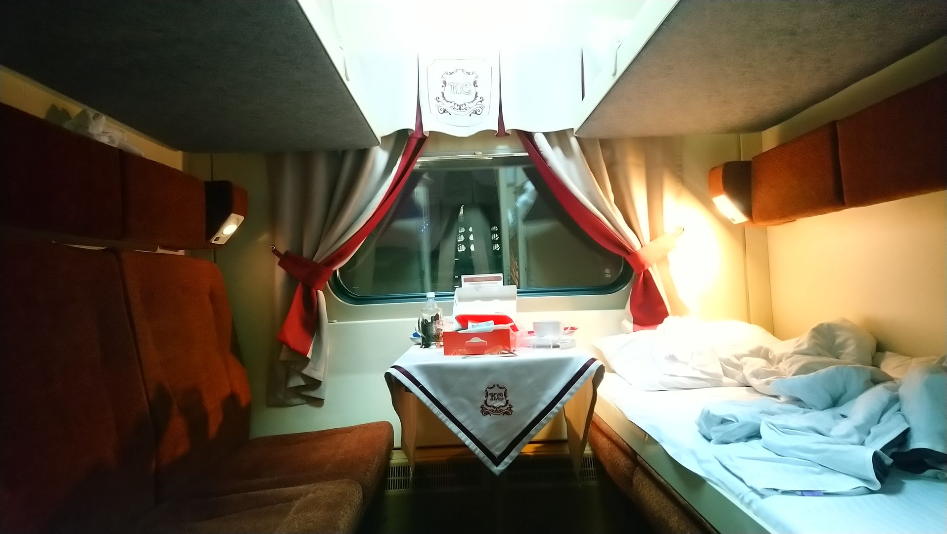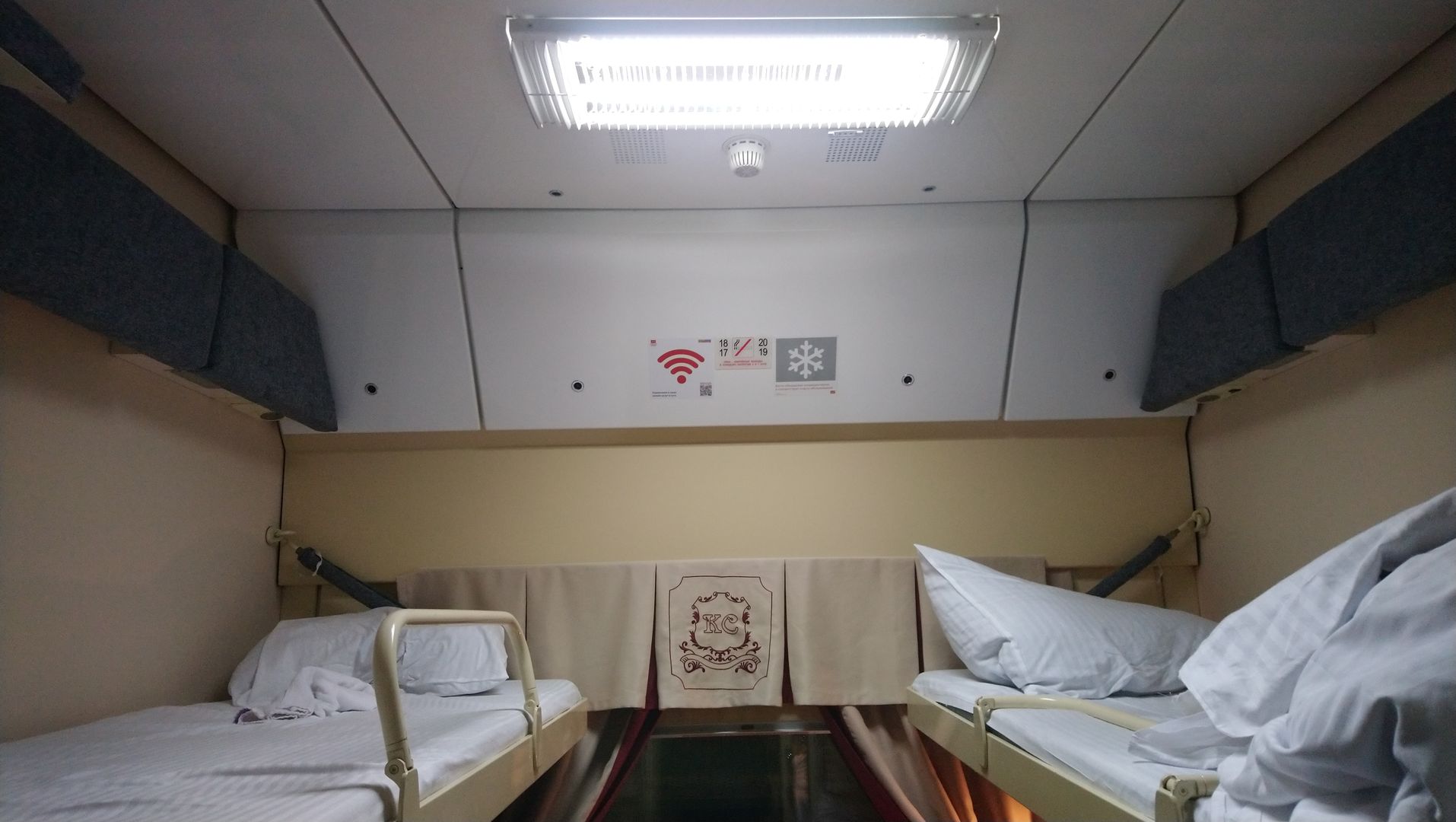 Какой там КВР! Вагончикам 14-15 лет только будет (не считая люксов), обычный плановый ремонт КР-1. Ничего хорошего из Воронежа в последнее время не возвращается, это касаемо и Стрелы. Завод начал активно менять в вагонах поезда 001 обивку на верхних подголовниках и низах верхних полок по просто серую. Вот недавние фото из вагона 004 14562. В остальных так же.