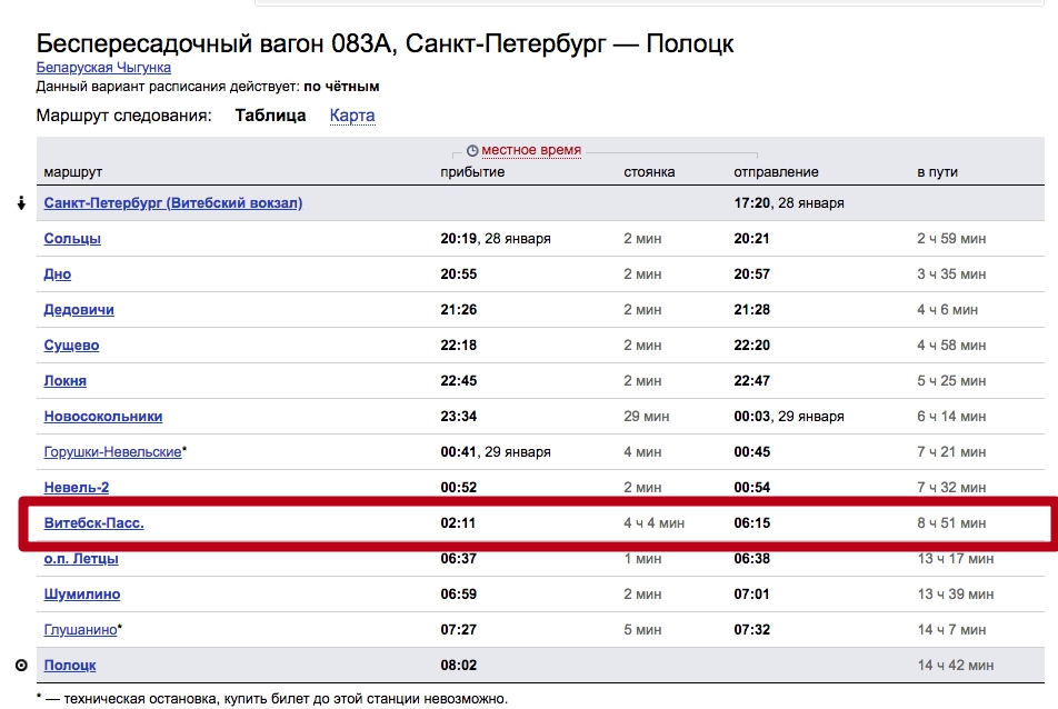 В этом варианте стоянка в Витебске 4 (четыре, блин!) часа. Вот пруф:
