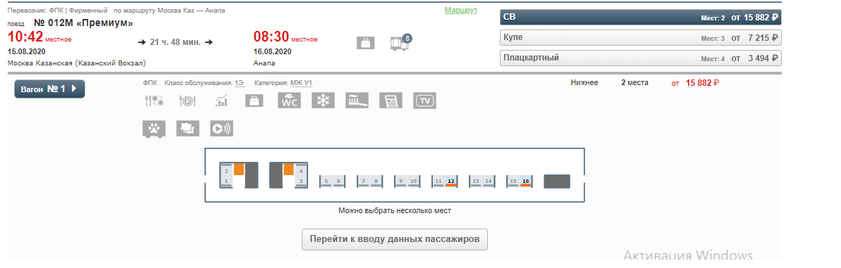 Здравствуйте! Хотим уточнить состав поезда 012 на 31.08.2020 Москва-Анапа. К сожалению, по ссылке пройти не удалось. Где еще можно посмотреть именно состав поезда. 7 вагон отсутствует на всех сайтах продаж именно на эту дату. А билеты куплены давно. Хотя и на 29.08, и на 01.09 7 вагон СВ есть! Спасибо. Прошу извинить. Мало опыта в покупке билетов на поезда дальнего следования в последние годы.Арсений: Сайт РЖД показывает наличие мест в вагонах, а не схему состава. Если вагон полностью раскуплен, то сайт РЖД его не покажет. Схему состава можно смотреть по ссылке. Крайняя дата, по которой можно посмотреть схему составов сегодня, 12 июня, - 10 августа, для 012М поезда - 9 августа. На 9 августа следующая схема: