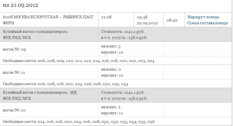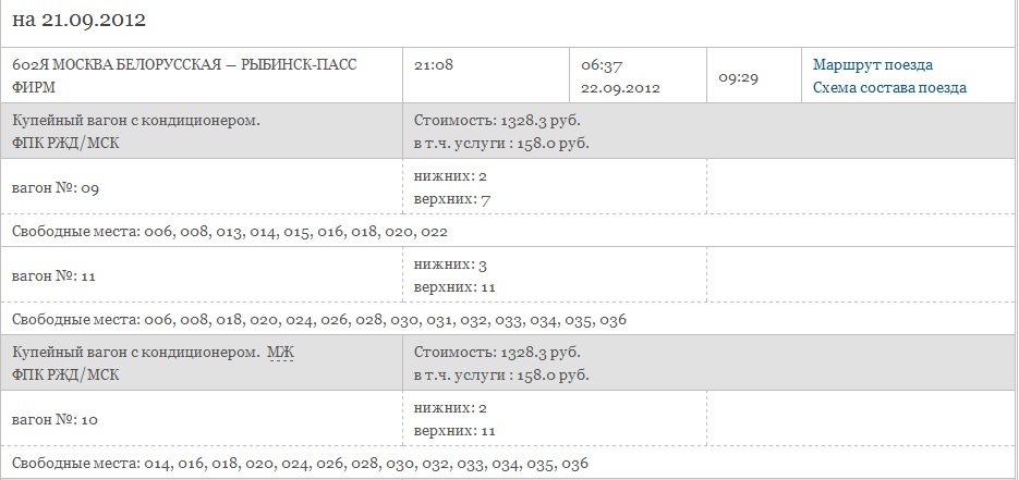 Мск-Рыбинск за сутки до отправления (купе)