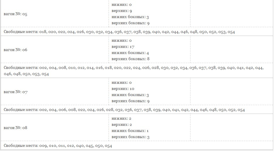 За 2 часа до отправления в плацкартном вагоне № 8 открылись места: 1,2, 3, 4, 5 и 6.