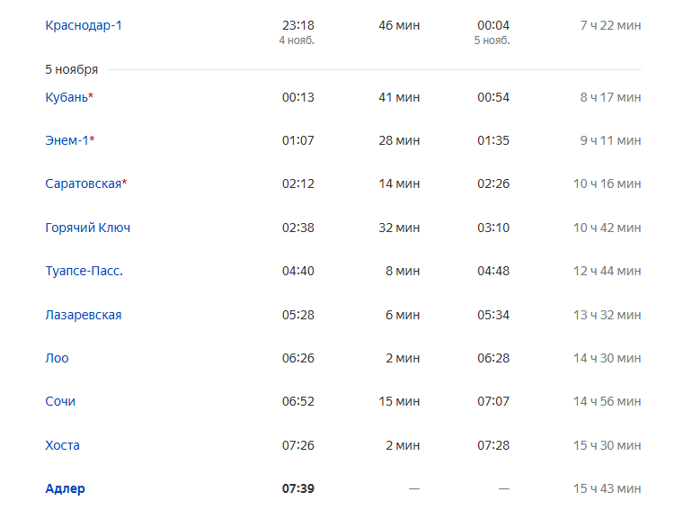 Вчера присматривал варианты овернайт от Краснодара до Сочи на начало ноября.