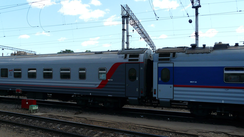 Плацкартные вагоны вообще подборка. 2 вагон - ТВЗ в ростовском раскрасе, выглядит прилично, достойный вариант для фирменного поезда. 1 вагон - днепр в раскрасе РЖД, невозможно, видимо, меня убедить, что такой вагон может быть в составе фирменного поезда. 0 вагон - старый ТВЗ в раскрасе РЖД, вагон весь выцвел, покрыт ржавчиной, смотрится ужасно.