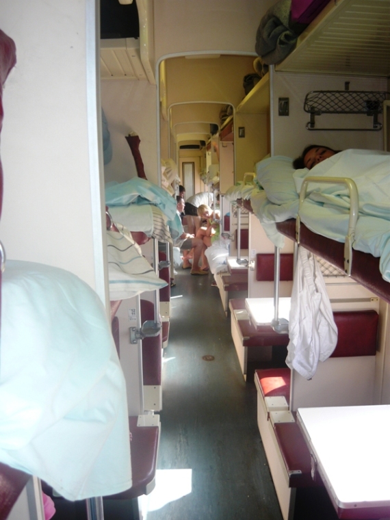 Все плацки - днепры, с работающим кондиционером. Правда, в одном из вагонов еще на ходу, до полной остановки начинали дружно откидываться форточки - очевидно, кондей тянул слабовато. В остальных - и на стоянке вагоны стояли с задраенными окнами.