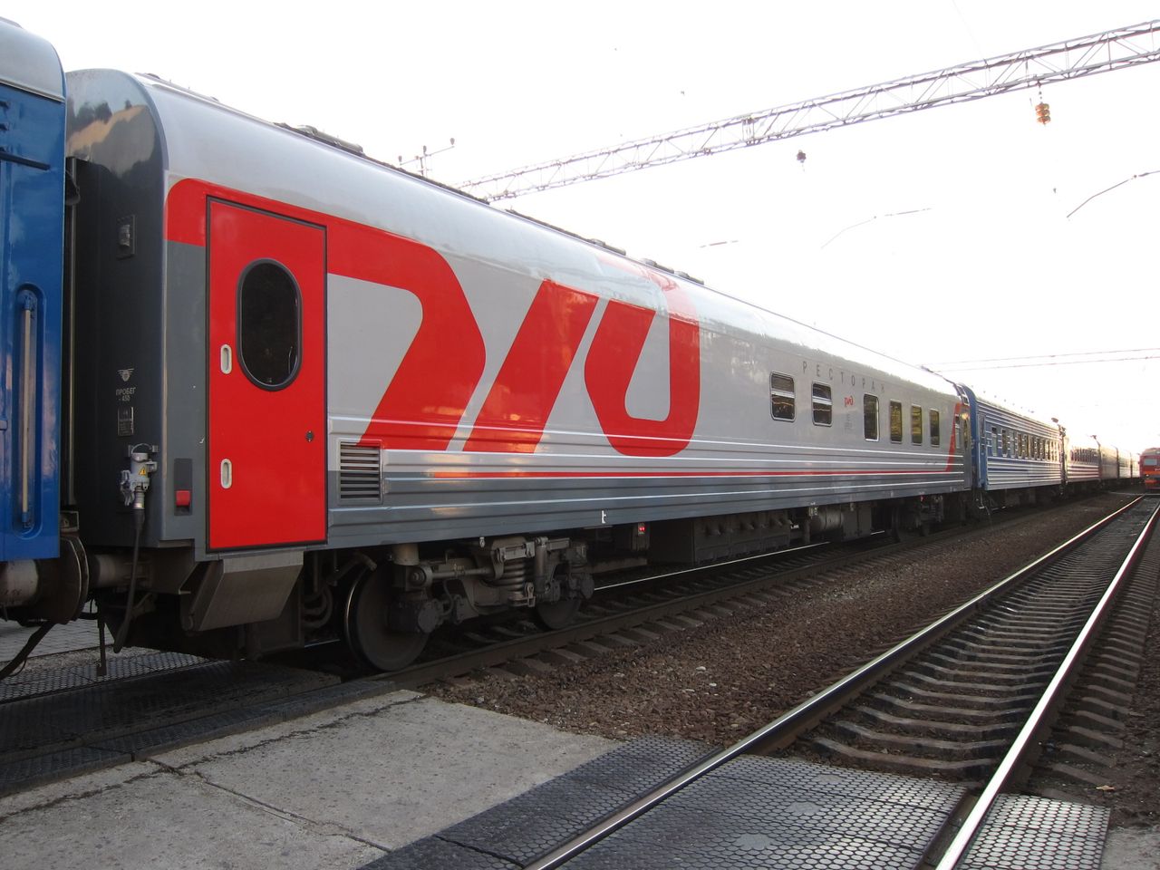 Вагон-ресторан нового модельного ряда в составе поезда 104С на ст. Лазаревская, 25 сентября 2011 года.