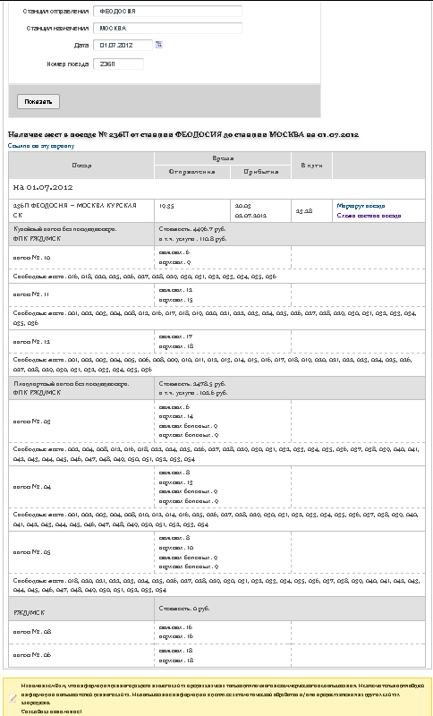 Еду на Белку, беру ему билеты обратные (дней за 9-10 до отправления), хорошие! Причем наличие мест в кассе полностью соответствует инф-ии в справочной- "тыкалке".