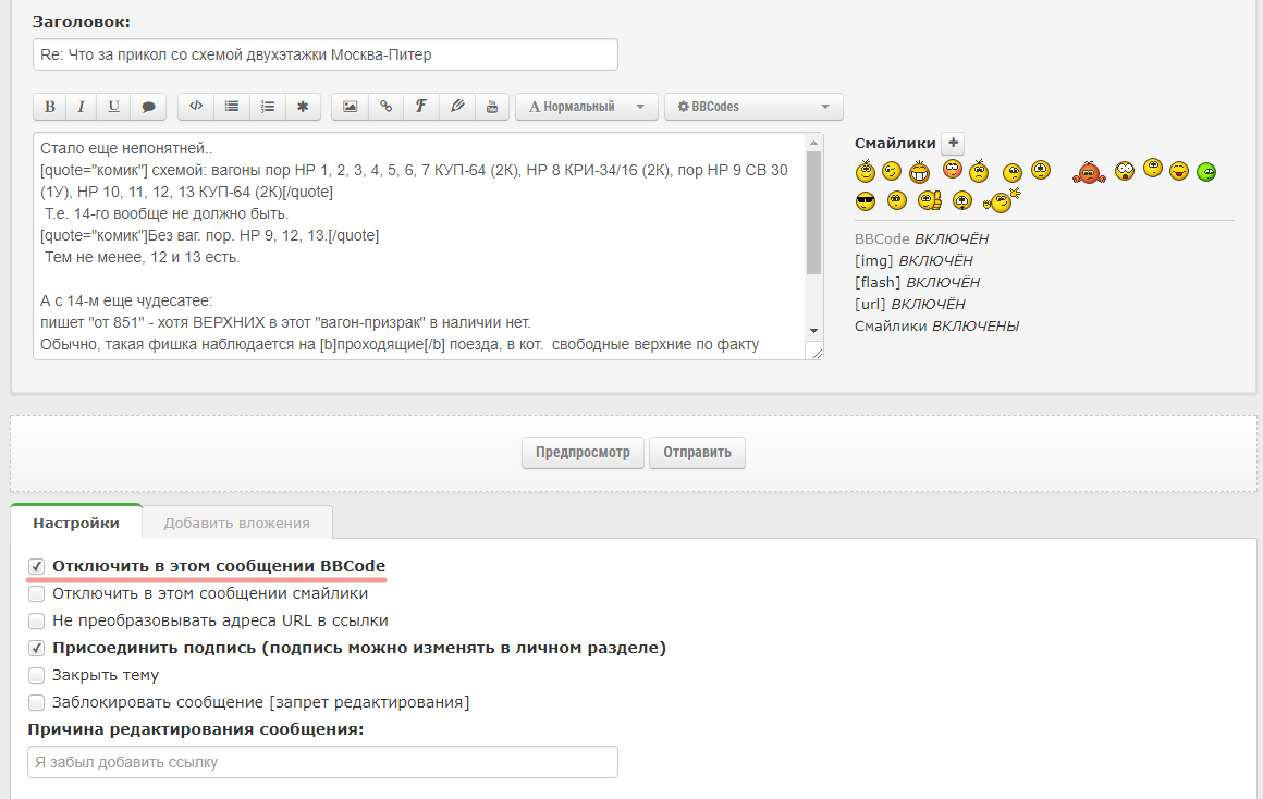 rs-basique: Всё проще, стоит галочка "Отключить в этом сообщении BBCode". Как, например, и в этом.