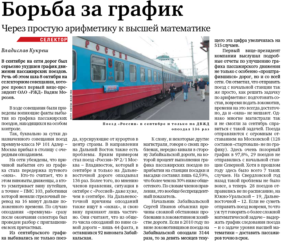 Альберт К:При развитой в стране ферроэквинологии, стыдуха публиковать в газете фотографии чёрти какой давности и поганого качества. На сайте РЖД такое же убожество.