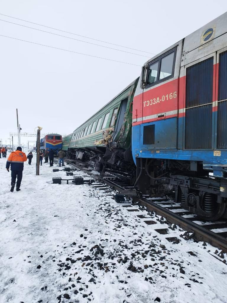 Согласно предварительным данным, произошло боковое столкновение состава, шедшего по маршруту Бишкек — Самара, с маневровым локомотивом. В результате случился сход тепловоза, вагона №1 и трех колесных пар вагона №2 пассажирского поезда.