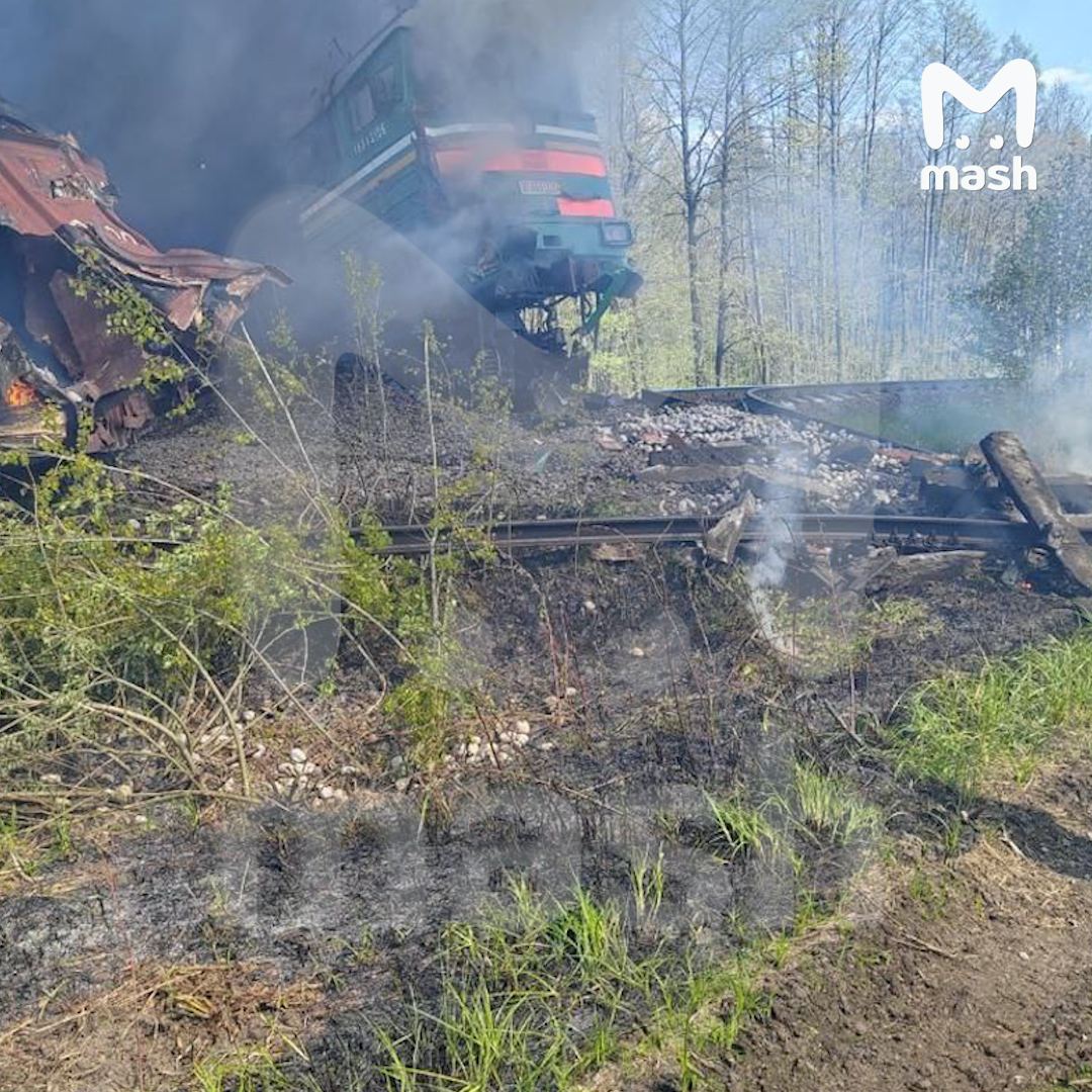 В Брянской области в результате подрыва железнодорожных путей сошел с рельсов локомотив грузового состава с нефтепродуктами, а также несколько вагонов.