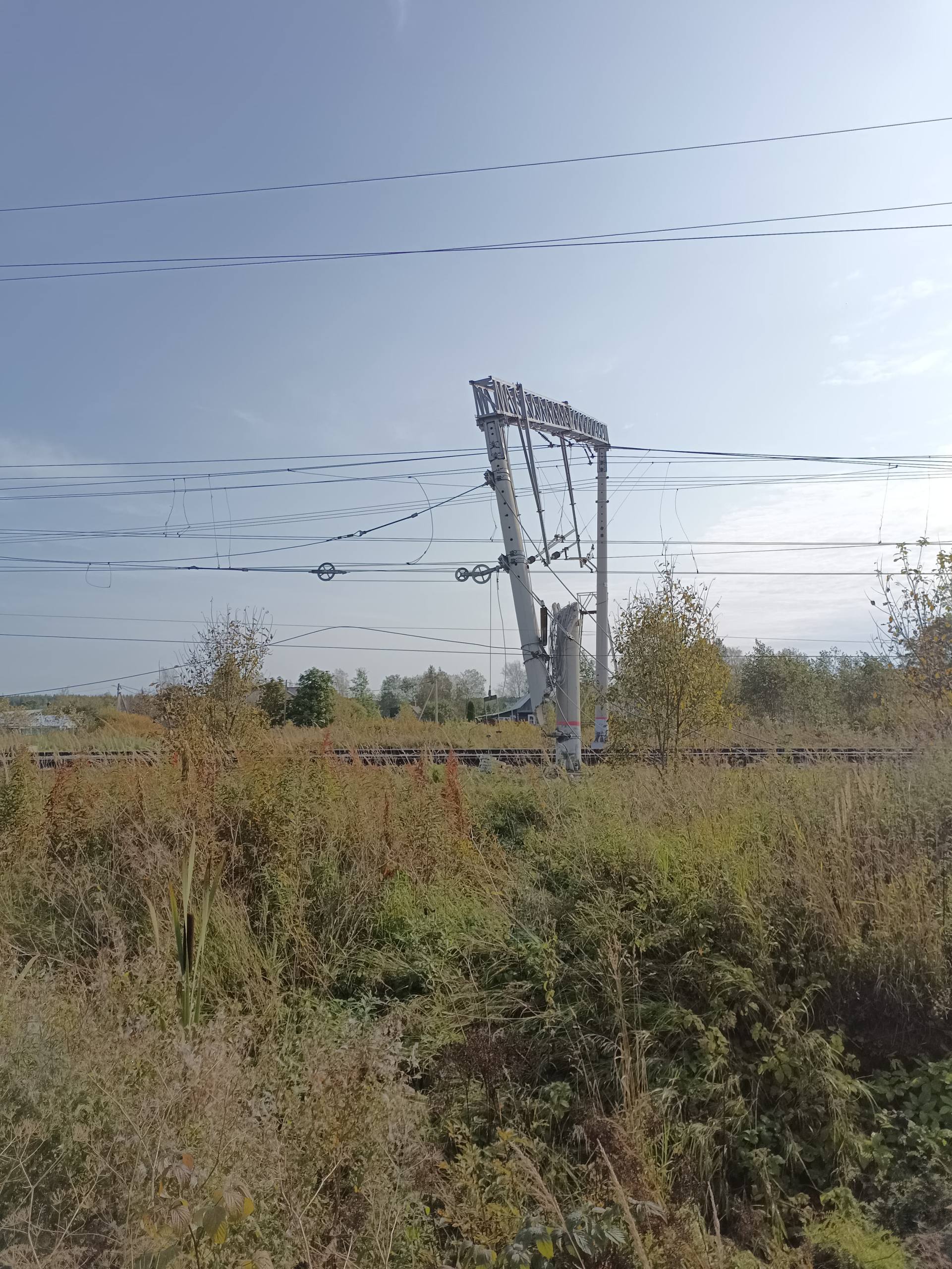 Судя по фото выше, как может наклонившаяся опора КС стать причиной схода тепловоза? Снова диверсия? если да, как эти два события произошли одновременно? Я имею в виду опору и локомотив?