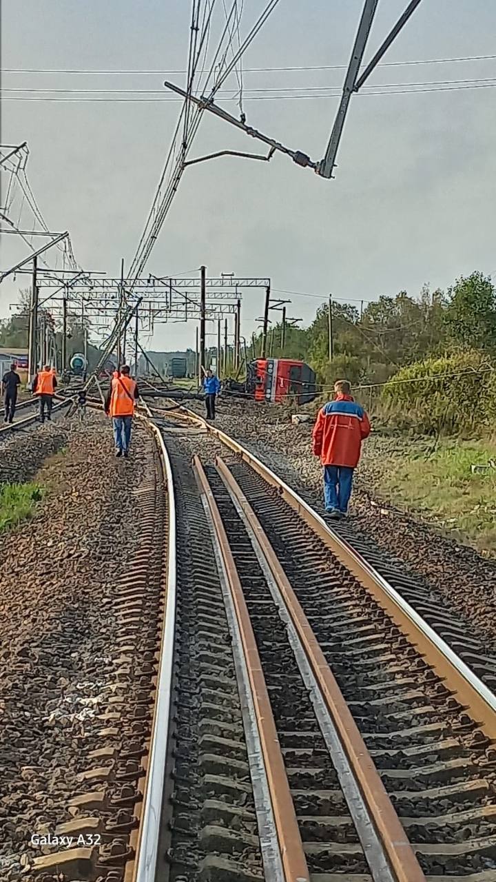В комментах в телеге, некоторые высказывают мнение, что завалился от превышения в кривой, торопился за псковской ластой и я пересмотрев много фото и видео, этого не исключаю. Ждём официальные причины.Chesnok007: Судя по фото выше, как может наклонившаяся опора КС стать причиной схода тепловоза? Снова диверсия? если да, как эти два события произошли одновременно? Я имею в виду опору и локомотив?