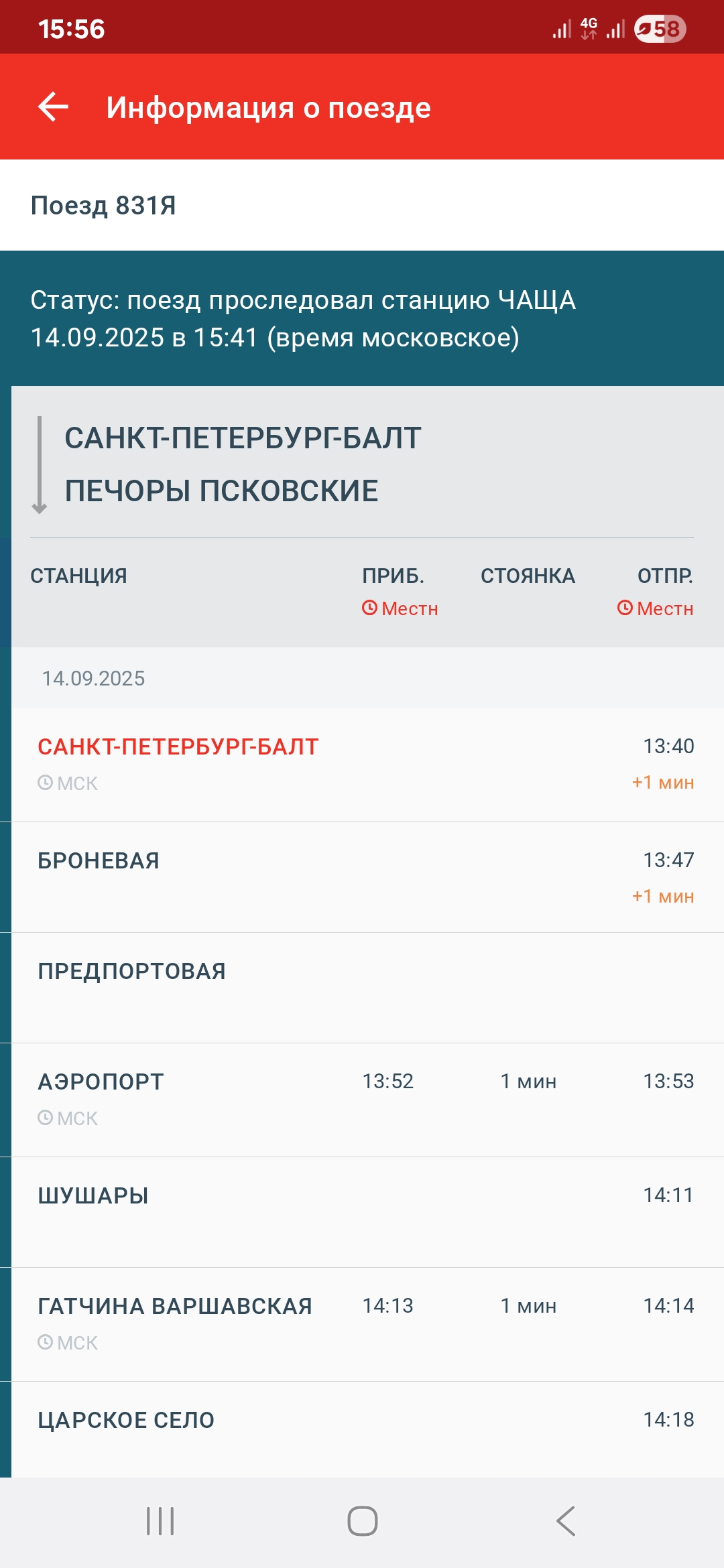 В 15:25 с Любани отправился поезд Минск СПб