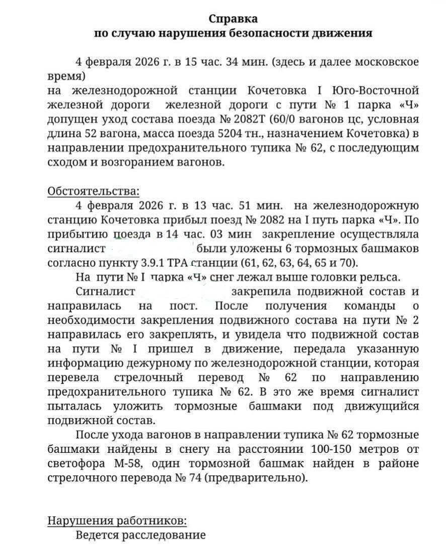 По справке - вообще ерунда выходит. Как же она закрепила состав , если он укатился !? Выходит - не закрепила !?