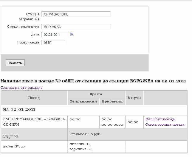 запрос мест на 02.01.10 симферополь - ворожба выдаёт в т.ч. 068П. очевидно, украина прицепила вагон, но куда и с каким расписанием после харькова? в схеме его нет, в запросе мест только указание на 25 вагон и нули в расписании и стоимости. кто-нибудь с доступом к первоисточнику может разъяснить?