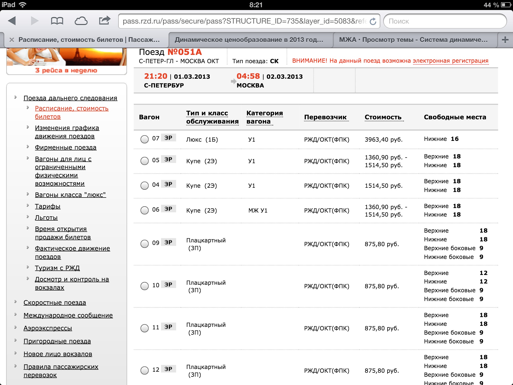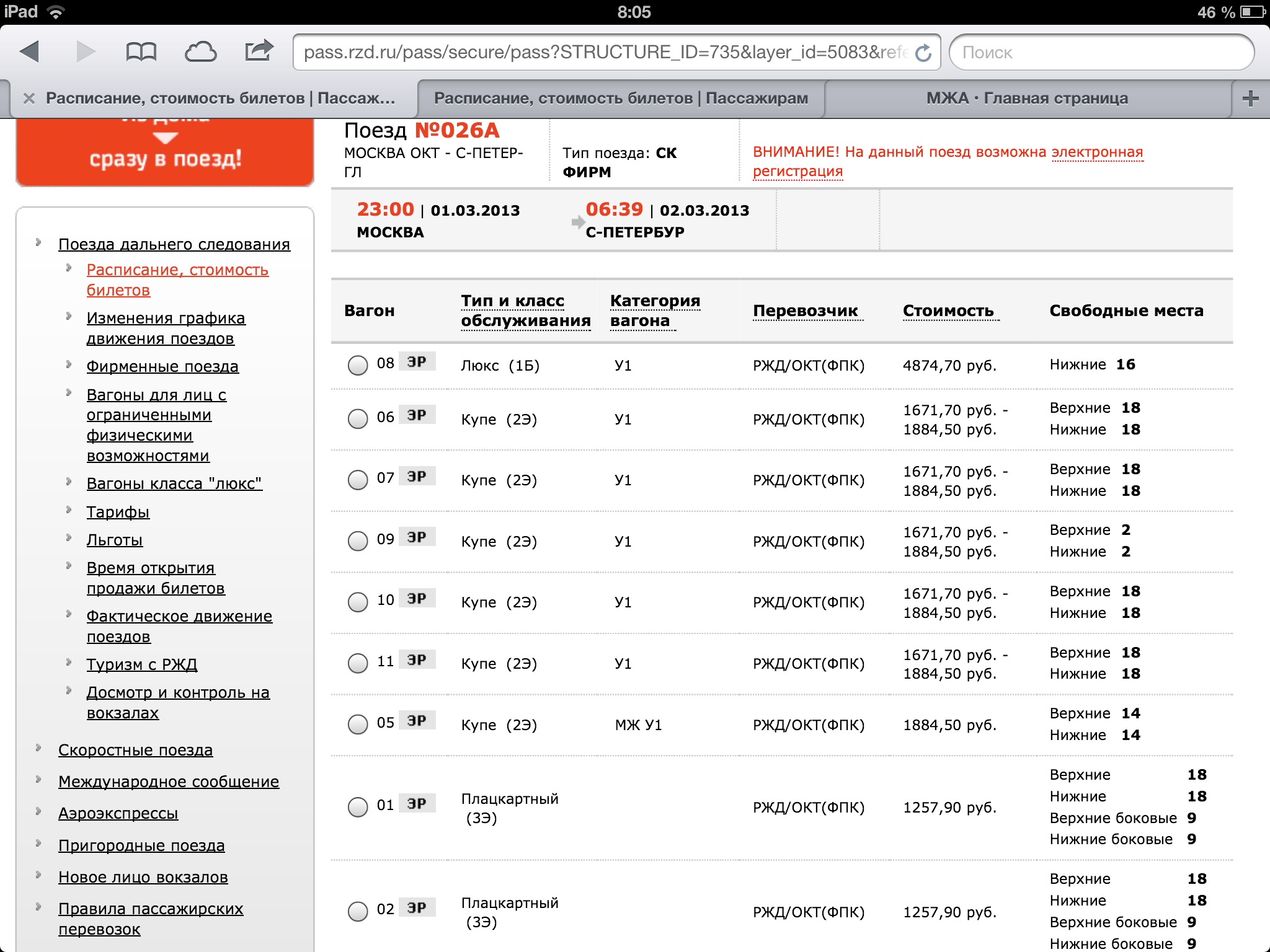 А вот СПб - Москва нефирменные (фирменные приведены пару постов ранее)