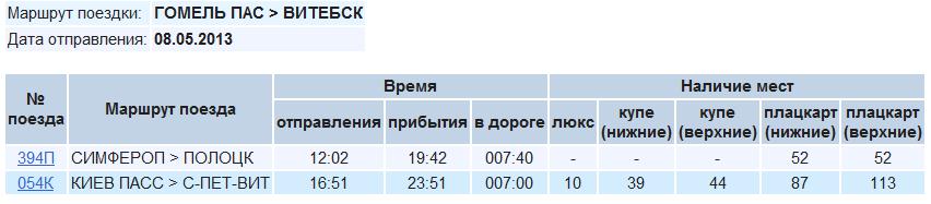 Стоит задача выехать из Гомеля в Питер 8 мая, из-за более раннего прибытия в Питер предпочтение отдается поезду Киев - СПб.