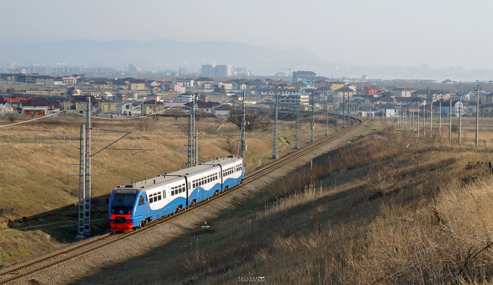 Первый пригород из Керчи на перегоне Гостагаевская-Анапа и на станции Анапа. 7 марта 2020 года.