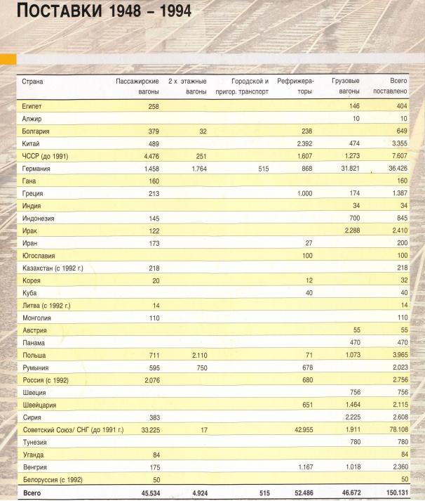Напоследок, любопытная суммарная статистика поставок вагонов Deutsche Waggonbau AG и его предшественниками за период 1948 - 1994 гг: