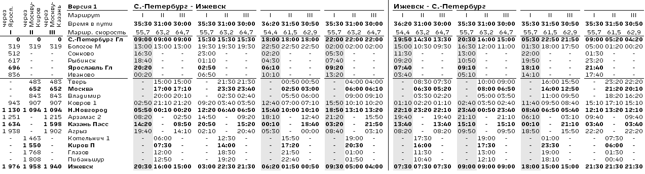 ev17:А 132 и Магнитогорский пусть ходят одной ниткой с Агрыза до Питера. И тогда придется делать группу ижевскую в 112-му. Но опять же минус - теряется удобная связь Ижевска с Кировом, Тверью ::-(: