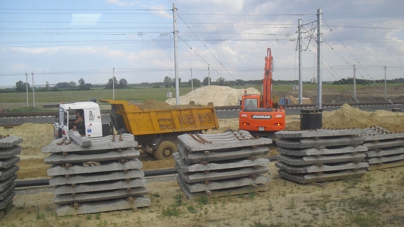 Продолжу рассказ о ЖД инфраструктуре в направлении Анапы. Сейчас самое большое строительство наблюдается на ст. РЗД9км. Там уже почти готов новый парк! Расположен он параллельно существующей станции. Сейчас ведуться работы по монтажу КС. РШР уже лежит. Так же в районе 9км строится разноуровневая ЖД развязка, что бы поезда (ИМХО) идущие из Анапы в направлении Протоки могли беспрепятственно (не пересекая встречное враждебное направение) следовать дальше. Между 9км и Юровским уже почти везде лежит второй путь. Правда кое где еще лежат только рельсы, а кое где только нижнее строение пути подготовили. Спрямления так же видны.