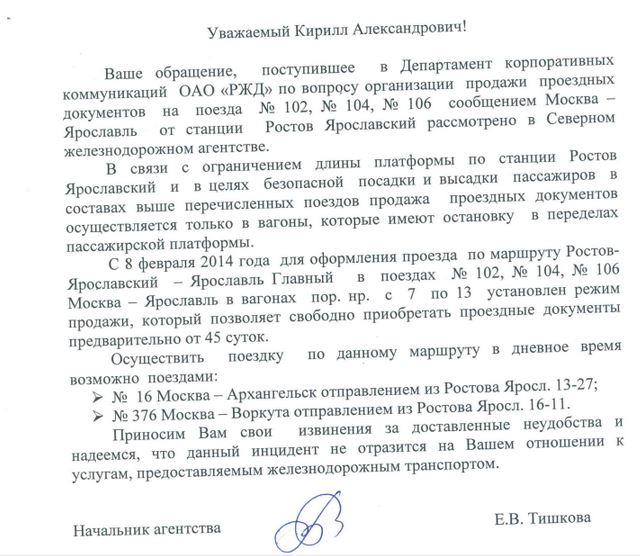 balberov:А кто понимает, когда и зачем закрыли продажу по Ростову на 101-106 в сторону Ярославля? Главное, Москва - Ростов в продаже, Ярославль - Ростов в продаже, Ростов - Москва в продаже, а Ростов - Ярославль - нет.