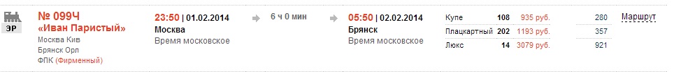 Уважаемые форумчане, мне нужна ваша помощь. Собираюсь 31.01 ехать в Москву 100 Брянск-Москва и из Москвы 099 Москва-Брянск. Так вот сейчас по запросу на 31 января на 100 поезд цена в купе 1941 руб. А начиная с февраля цена в купе всего 935 рублей. Получается скидка 50%. Это скидка или на февраль в купе на этот поезд снизили цену.