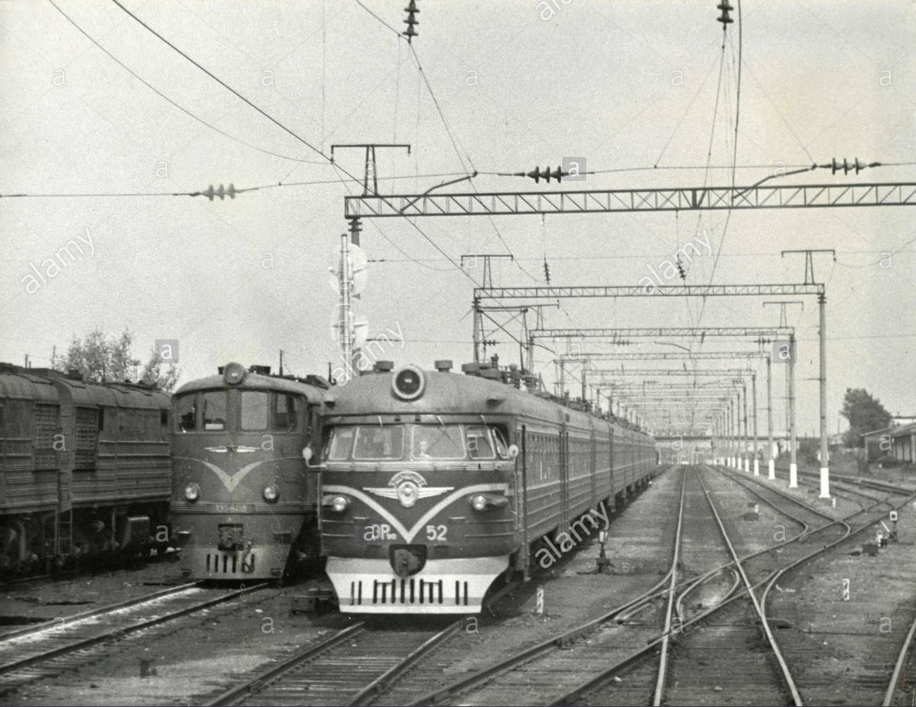 Электропоезд ЭР9П-52 на станции Пуховчичи, Минская область, Белорусская ССР (1960-е годы):