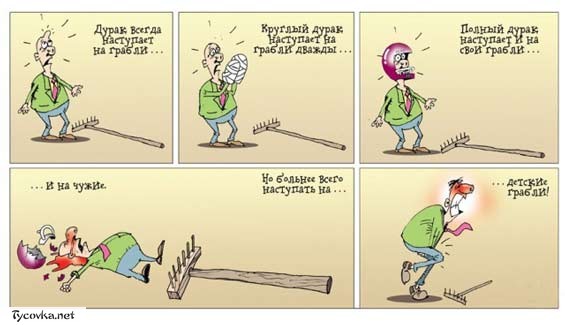 Какая сволочь на газоне в траве бросила грабли, мы тоже не узнаем, однако же полезно знать, где они могут быть ::-D: ::-D: