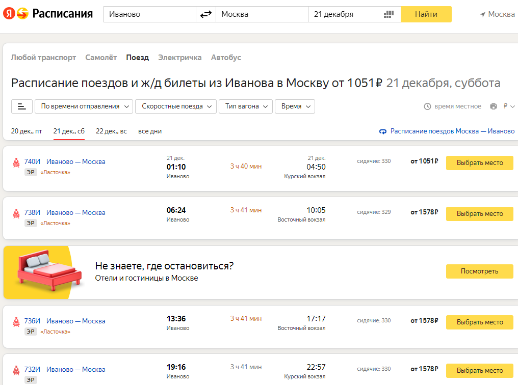 Из Москвы 3 Ласточки уходят с Курского, одна - с Восточного, в Москву же по 2 Ласточки приходят туда и туда.