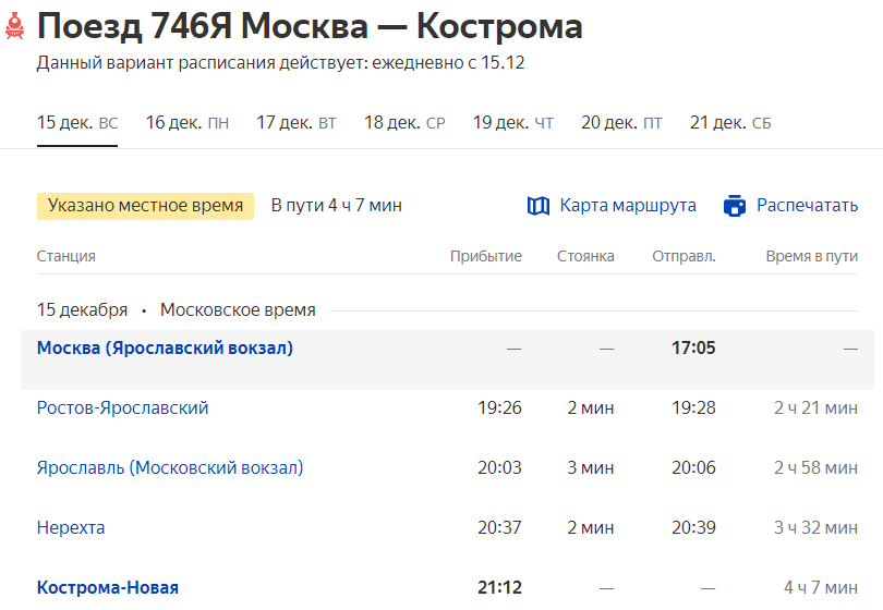 Третья Костромская Ласточка будет отправляться из Москвы в 17-05 под номером 746 с прибытием в Кострому в 21-12, из Костромы будет отправляться в 11-32 под номером 743 с прибытием в Москву в 15-39:Etrainer: По ходу ждём третью пару Ласт МСК - Кострома. Не просто так вечернюю из столицы отправляют раньше, а из Костромы позже - как раз через час после прибытия из МСК. Вот вам и потенциальный оборот под третью пару. Ждём назначения из Костромы в районе обеда и из Москвы вечером.