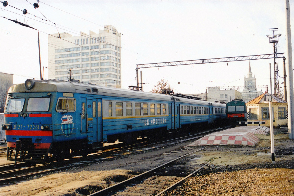 Электропоезд ЭР2Т-7239 в депо Волгоград-Пассажирское, Волгоградская область (фото сделано в июле 2001 года):